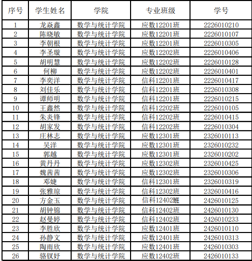 根据学校《关于开展2025年9428cn太阳集团古天乐国家励志奖学金、国家助学金评选工作的通知》通知要求,依照《9428cn太阳集团古天乐本专科学生国家励志奖学金评选管理办法》等规定,经过政策宣讲、本人申请、资格审查、学院初评审核,拟推荐龙焱鑫等26人为2024—2025学年国家励志奖学金获得者,现予公示。