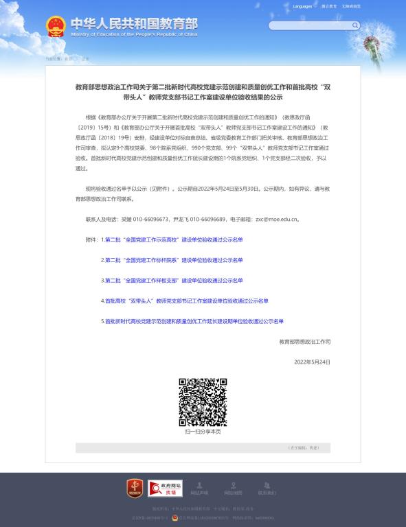近日,教育部思想政治工作司发布关于第二批新时代高校党建示范创建和质量创优工作和首批高校“双带头人”教师党支部书记工作室建设单位验收结果的公示,物理教师党支部经过2年的建设顺利通过了验收!