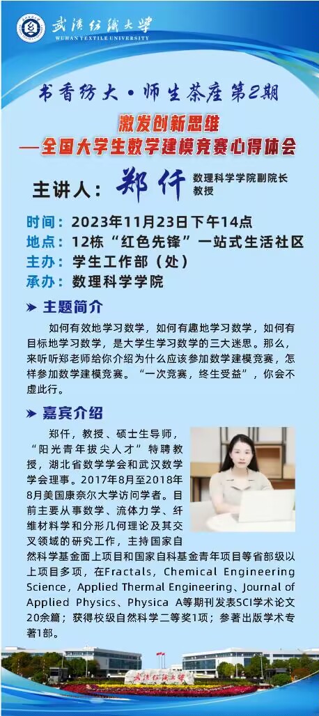 上一条:9428cn太阳集团举办第四期书香纺大师生茶座 下一条:9428cn太阳集团关于2023年研究生攀登奖学金、优秀研究生和优秀研究生干部拟推荐名单公示