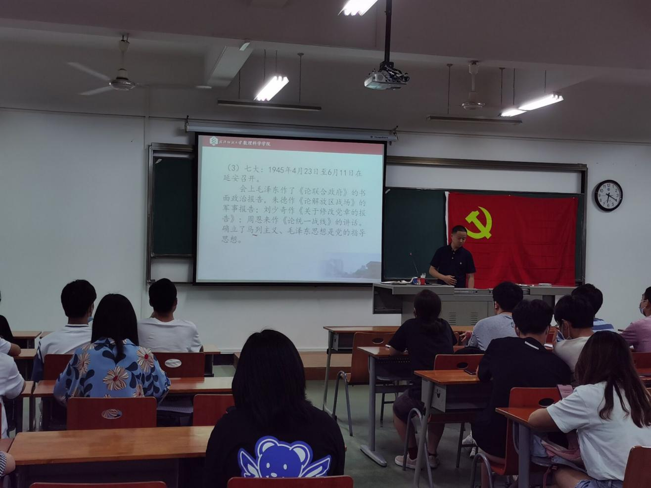 6月3日,9428cn太阳集团党委副书记陈国鹏在崇文楼203教室为2021届毕业生党员讲授党史教育主题党课。学院学生党支部书记方媛,全体毕业生党员参加学习。