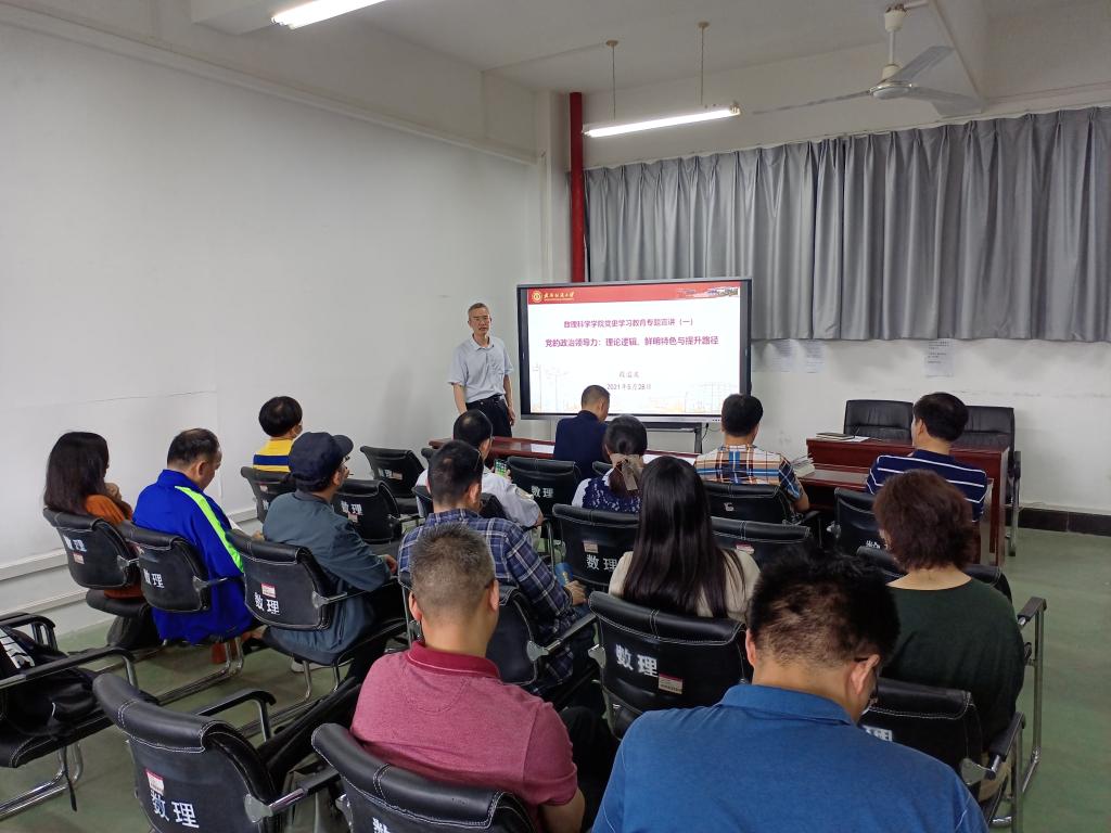 5月28日,9428cn太阳集团举行“党的政治领导力:理论逻辑、鲜明特色与提升路径”党史学习教育专题党课,专题党课由学院党委副书记段溢波主讲,学院党委委员、各系(中心)主任、党支部书记、工会主席聆听了党课。