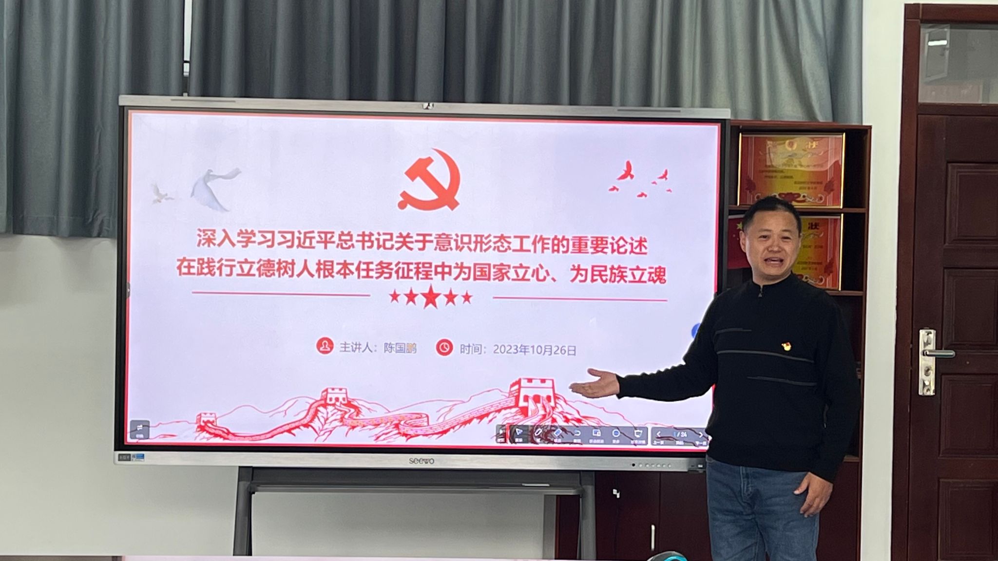 陈国鹏作了题为《深入学习习近平总书记关于意识形态工作的重要论述 在践行立德树人根本任务征程中为国家立心、为民族立魂》的报告。报告分5个部分,分别从新时代意识形态工作的形势论、本质论、价值论、体系论、责任论等方面予以阐述。
