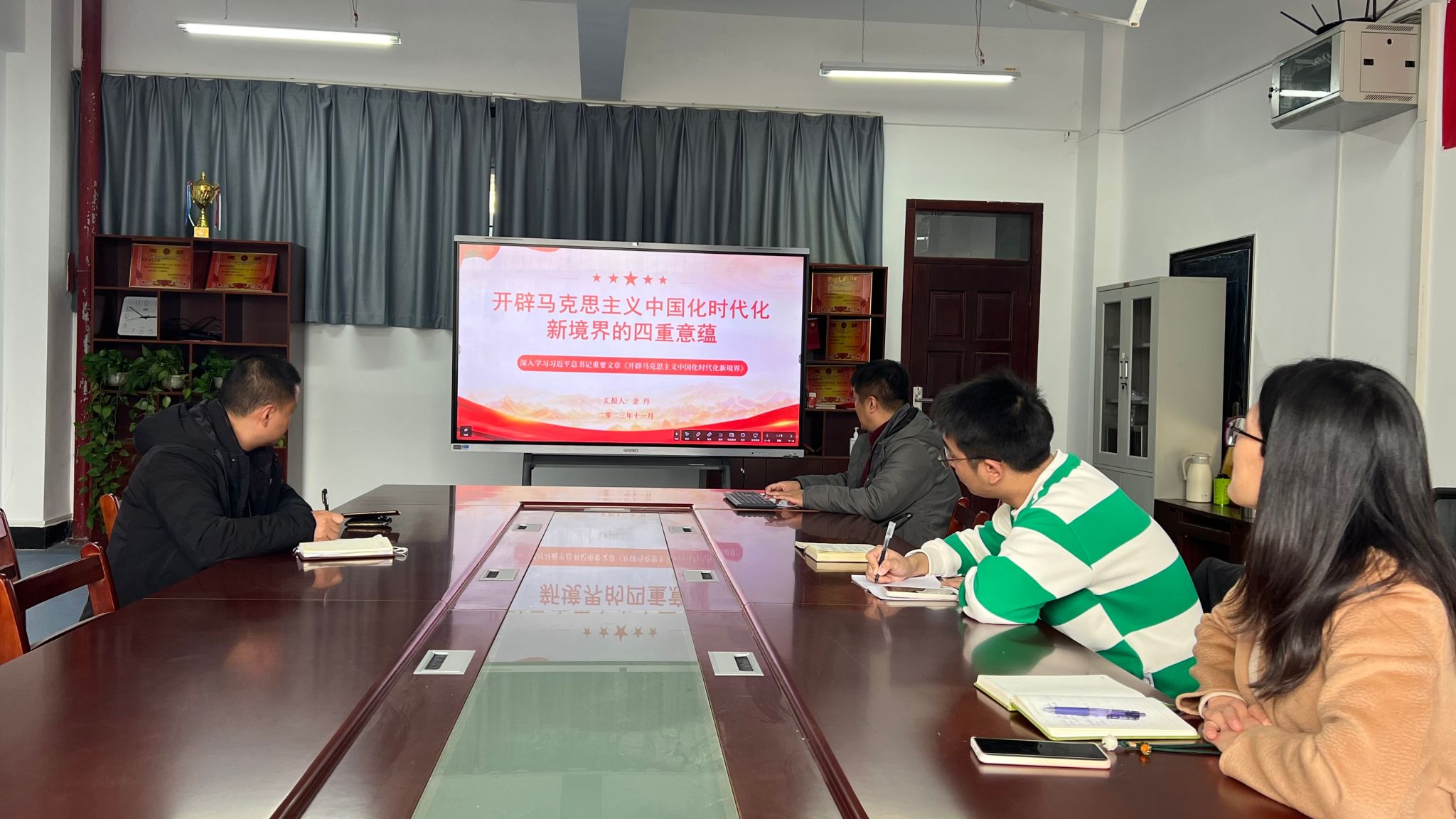 11月27日下午,9428cn太阳集团党委行政党支部召开11月主题党日活动,集体学习了中共中央总书记、国家主席、中央军委主席习近平的重要文章《开辟马克思主义中国化时代化新境界》。行政支部全体党员参加,支部书记陈国鹏主持会议。