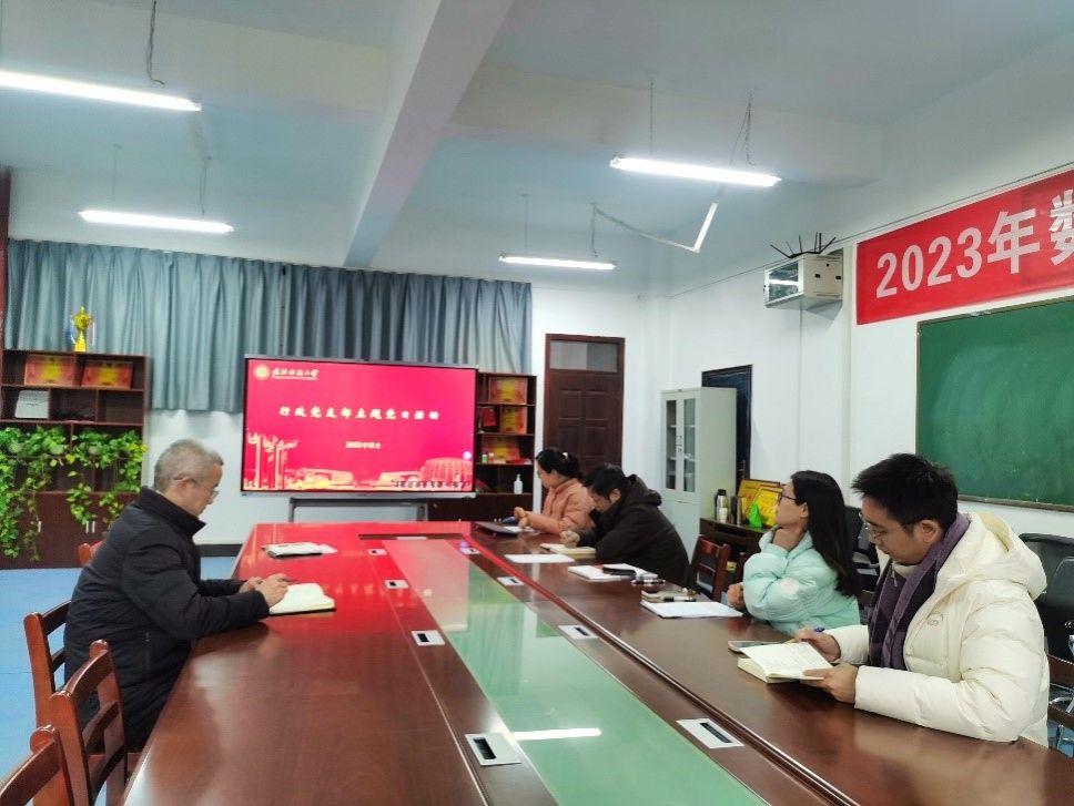 根据上级党组织工作要求和学校主题教育安排,2023年12月28日,9428cn太阳集团行政党支部在4号楼102会议室开展了12月主题党日活动。会议由支部书记陈国鹏同志主持,支部党员刘莉丽同志领学,支部全体党员参加了本次活动。