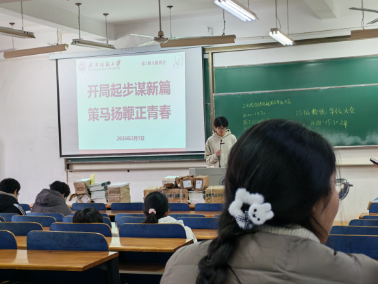 学业提升是本次班会的核心议题。曾琦客观复盘了上学期2025级学生的整体学习状况,既肯定了同学们在适应大学生活、夯实专业基础方面的进步,也直面部分学生存在的学习主动性不足、课堂专注力不够、数学分析等核心课程掌握不扎实等问题。为帮助同学们破解数学分析学习难题,借鉴优秀学习经验,班会特别设置学习方法分享环节,邀请上学期数学分析成绩优异的三位同学上台交流。