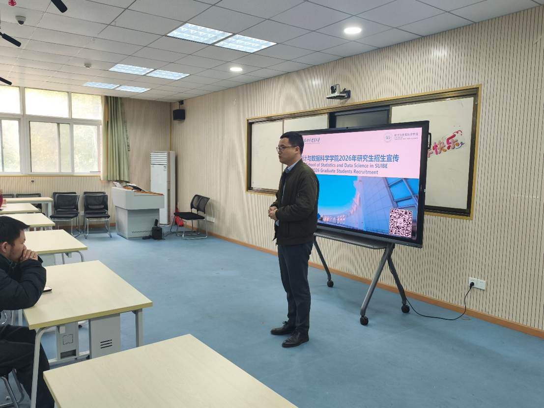 为进一步深化2023级学生对研究生招生政策的认知,明确备考方向与发展路径,3月19日下午,数学与统计学院邀请上海对外经贸大学统计与数据科学学院于崇文楼205教室召开研究生招生宣讲会。学院党委副书记陈国鹏主持会议,上海对外经贸大学统计与数据科学学院党委副书记范鸣,23级辅导员方媛及23级意向考研的学生参加会议。