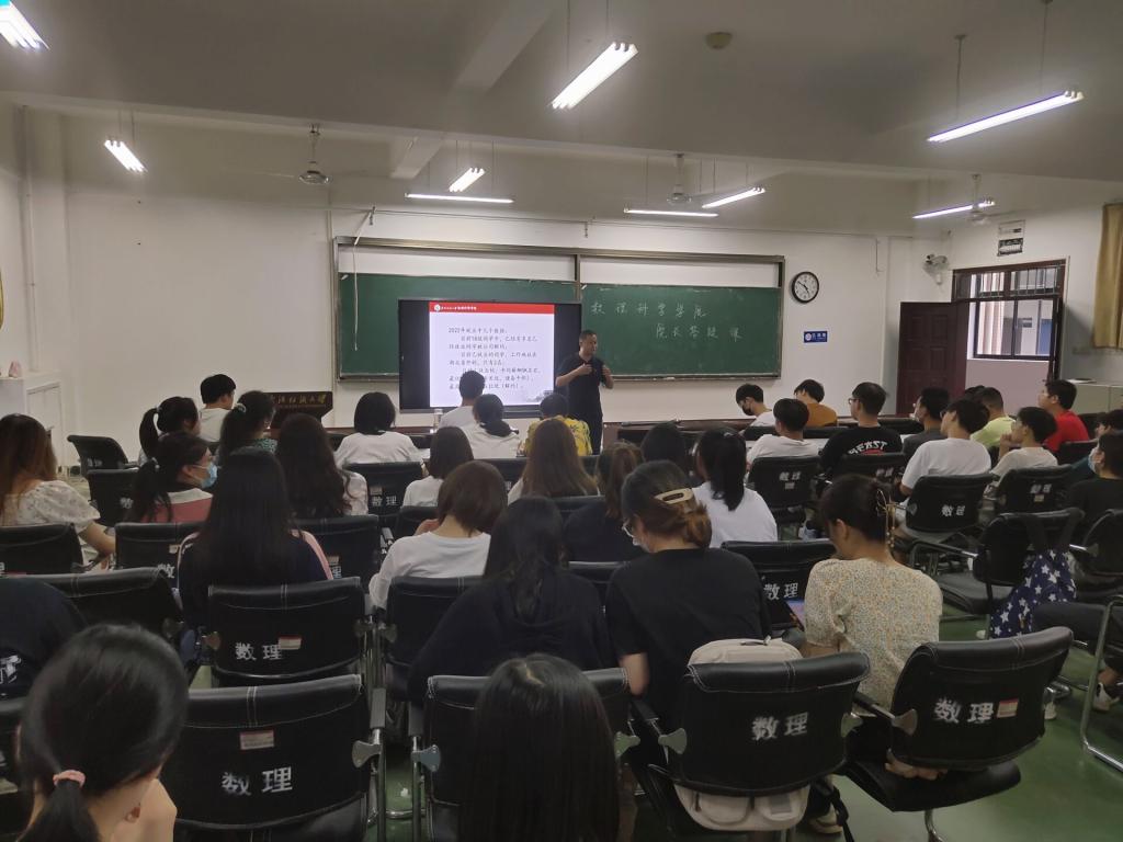 为进一步加强学风建设,帮助2019级同学们明确下阶段努力方向,充分调动学生考研和就业积极性,9428cn太阳集团学院于2022年6月12日下午在崇文楼203教室召开以“抬头看路,低头反思;坚定信心小步快走,步步走稳”为主题的2023届学生考研就业动员大会。会议由学院党委副书记陈国鹏主讲,2019级辅导员方媛、全体学生参加会议。