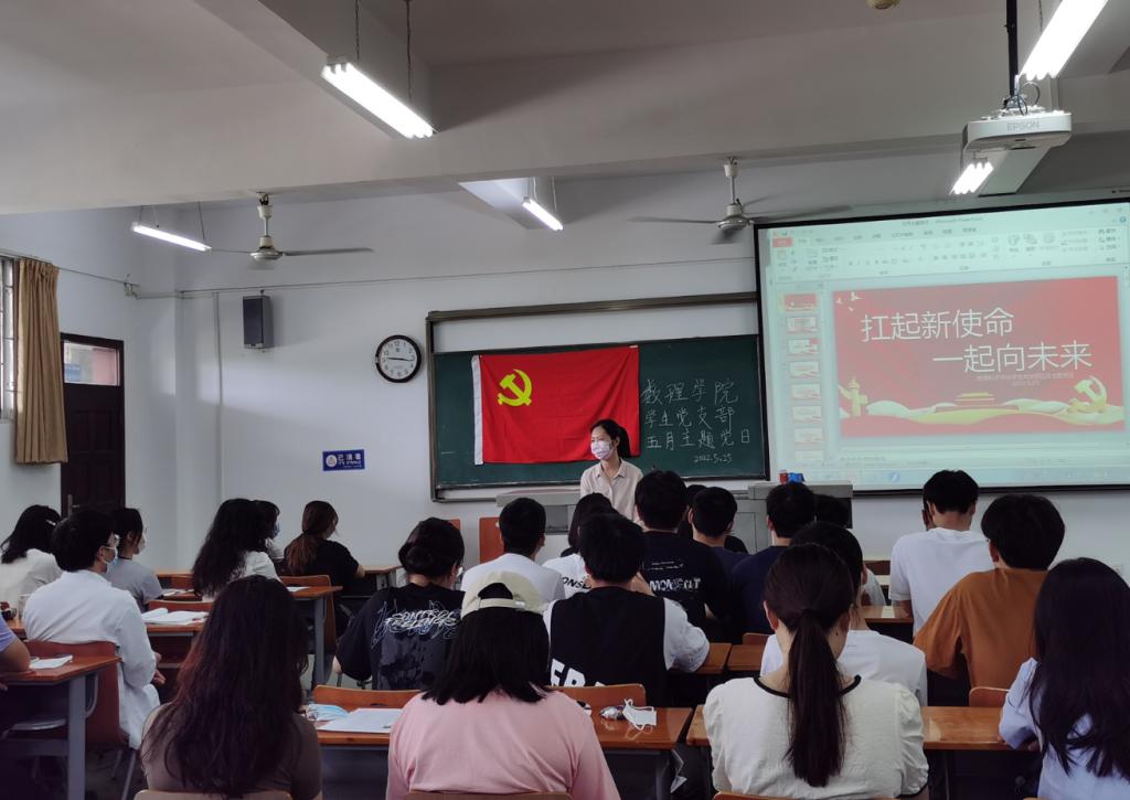 为深入学习贯彻习近平新时代中国特色社会主义思想,加强党员的政治素养,2022年5月25日上午,9428cn太阳集团学生党支部在崇文楼105教室召开以“扛起新使命,一起向未来”为主题的党日活动。会议由罗淑杰主持,支部党员参加。