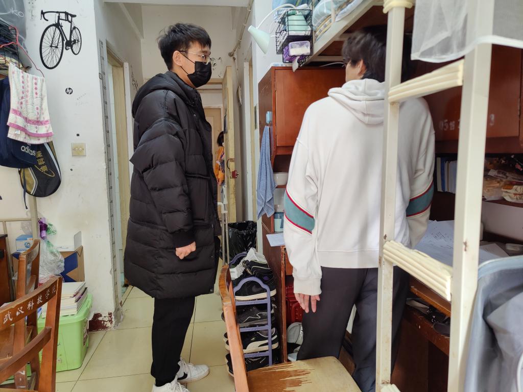 走访过程中,辅导员与同学们进行了亲切交流。辅导员关切的询问同学们的生活状况,叮嘱同学们认真阅读并遵守学校宿舍管理规定,并强调了宿舍安全注意事项,宿舍内不能使用违规电器,注意用电安全。同时提醒对于部分沉迷游戏的同学,希望他们在课余时间勤奋学习,积极参加各类课外活动,提升自身素质。
