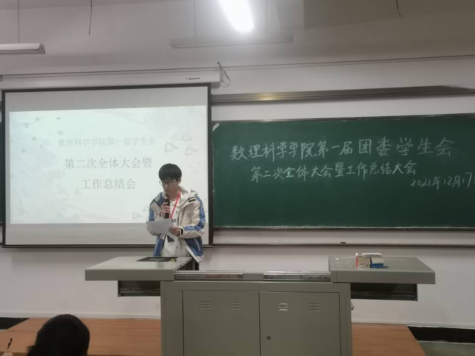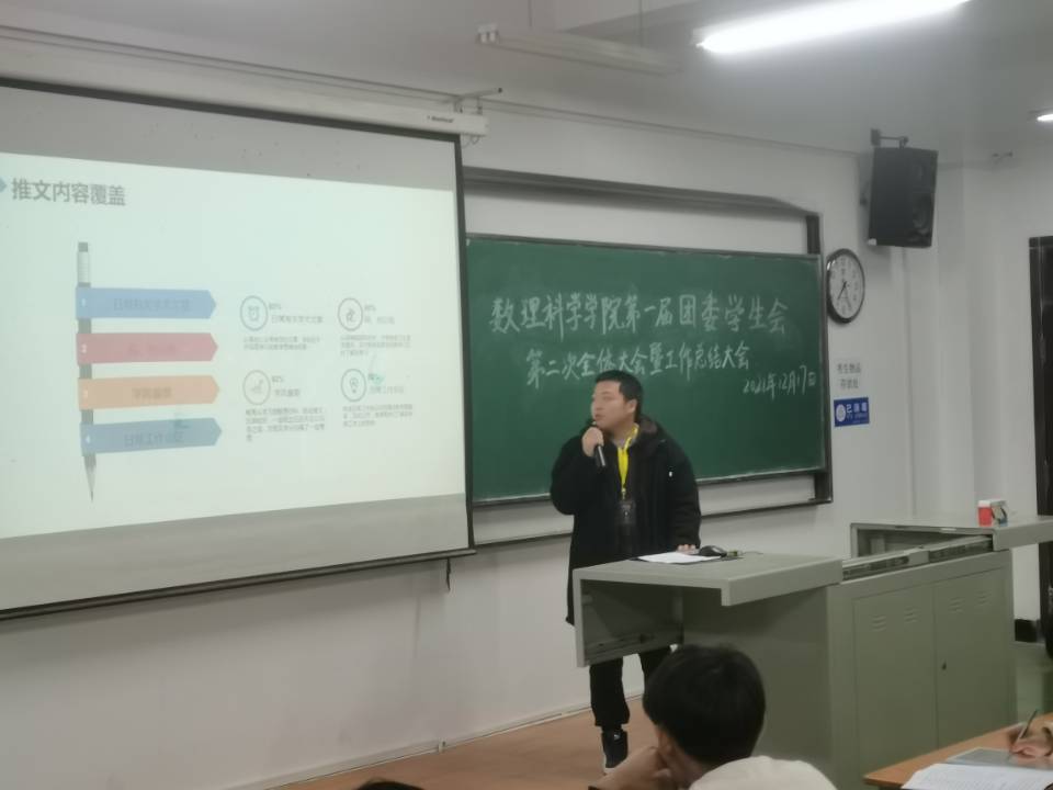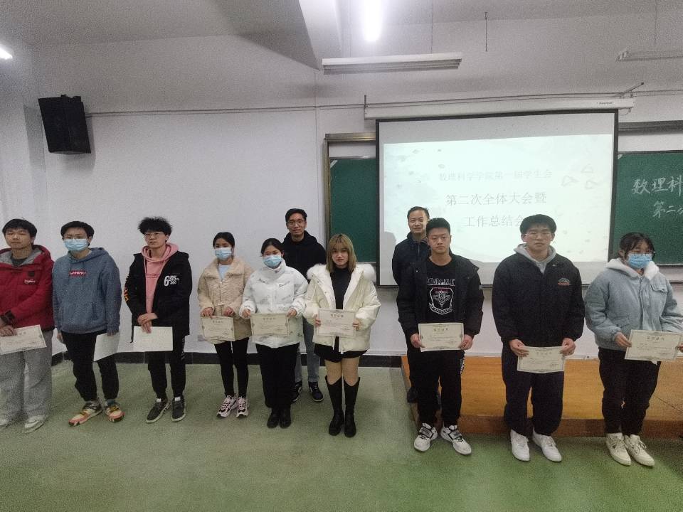 会议伊始,学生会各部门部长以PPT和演讲的形式对本学期工作成果进行了详细汇报总结,汇报了本学期以来部门工作取得的成绩、心得,并指出了本学期工作中存在的问题和不足之处,同时对下一年工作有了新的展望。在此之后,党委副书记陈国鹏与辅导员熊亚雄为上一学年在学生会工作中表现突出的同学颁奖,并对他们为学生会的付出表示肯定。