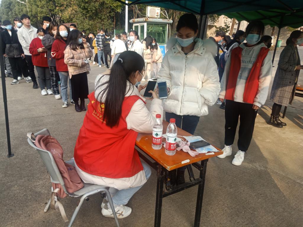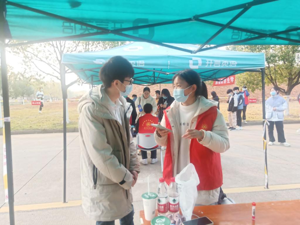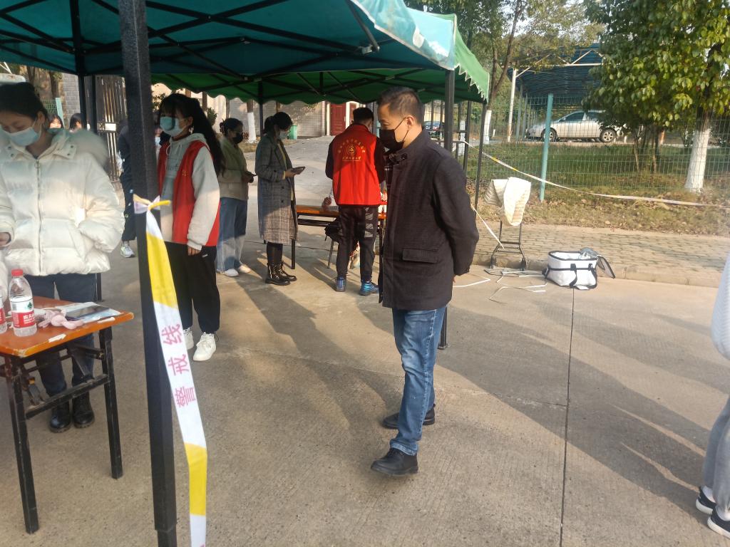 为响应疫情防控要求,服务师生开展核酸检测抽查工作。12月9日下午,9428cn太阳集团组织核酸检测志愿者于阳光校区保卫处负责核酸检测的志愿工作。数理学院此次安排23名志愿者参与此次核酸检测工作,数理学院党委副书记陈国鹏、辅导员熊亚雄负责此次志愿活动的领导工作。
