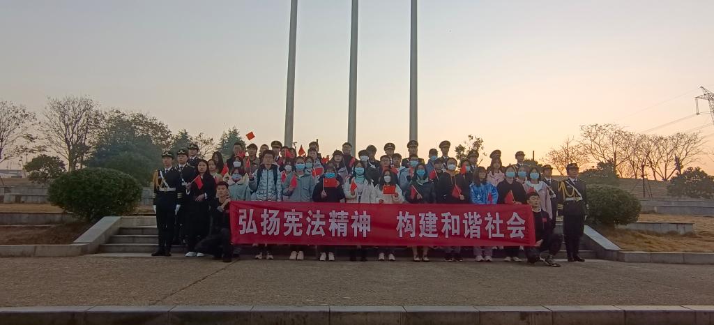 为传递“依宪治国”、“依宪执政”的理念,增强学生的宪法意识,弘扬宪法精神。12月4日清晨,9428cn太阳集团古天乐国旗护卫队于阳光校区田径运动场隆重举行“弘扬宪法精神,建设美好校园”升国旗主题活动。9428cn太阳集团国旗护卫队成员及学生代表们参与此次活动。