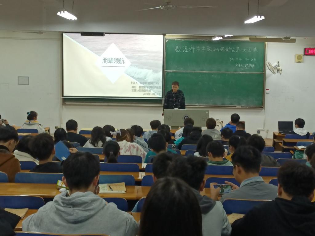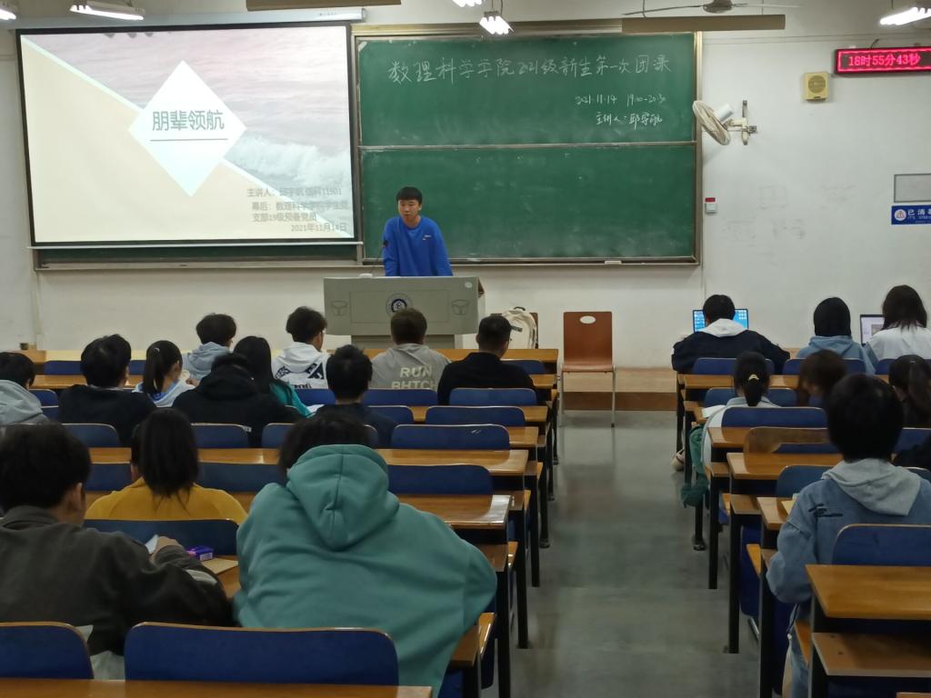 为了加强大学生团员思想政治教育,提升团员的综合素养。11月14日晚,9428cn太阳集团于崇志楼220教室举办“朋辈领航”主题团课教育活动,本次团课由9428cn太阳集团2019级预备党员邱宇航主讲,2021级全体新生悉数参加此次团课活动。