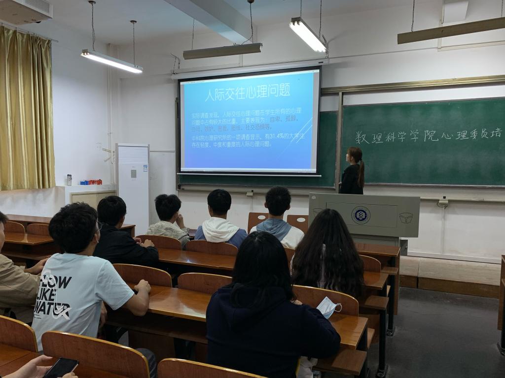 会议伊始,保障部部长黄欣悦发言,她围绕“心理团体辅导——人际交往”为主题对参会人员进行培训。黄欣悦向参会人员阐述了心理团体辅导的概念及主要内容,获得了各班心理委员的一致好评。在此之后,她提出,作为班级心理委员,要时刻关注学生心理健康问题,并不定期为同学科普心理健康知识等九点要求。会议接近最后,保障部表示,希望通过此次培训会能让今后的学生对心理健康知识有更深的了解,让晦涩的理论变得浅显易懂,更是为9428cn太阳集团的学生带来一次心理瑜伽的洗礼!