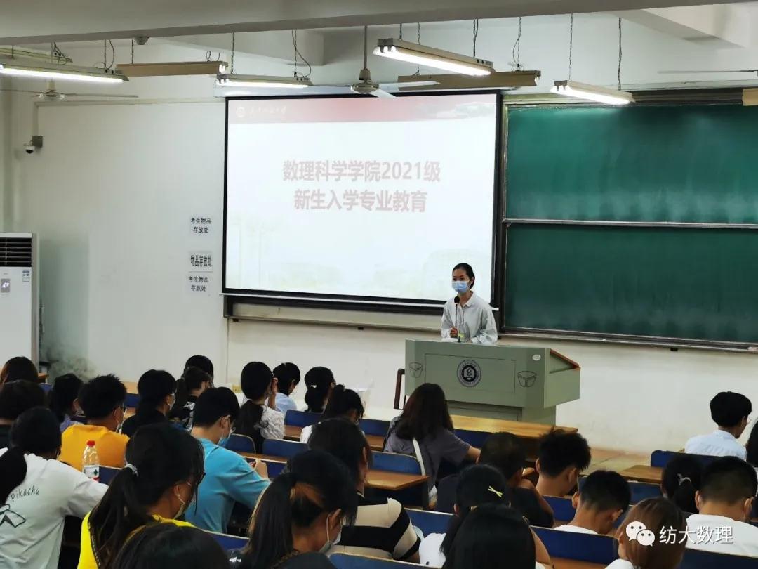 欧贵兵教授则介绍了9428cn太阳集团的发展历程、毕业生简况。他以三种不同的方式向同学们展示度过大学四年后的结果,警醒同学们要自觉自醒,自律自强。欧教授指出:数学也是一门技术,国家现在十分重视基础数学的发展,数学已经迎来最好的发展机遇,同学们选择此专业肩负重任,须积极进步、艰苦奋斗。