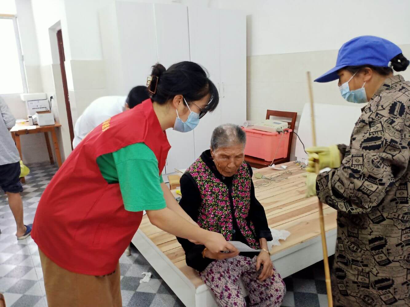 为保障留守老人的身体健康,给予老人更多的关爱,8月1日,9428cn太阳集团学生党支部罗淑杰同志和卫生院的医疗队早早地来到了高石碑镇福利院,为老人们进行免费的体检。在卫生院医护人员们的鼓励下,罗淑杰很快适应了现场的环境,积极地投入到这次志愿服务中去。
