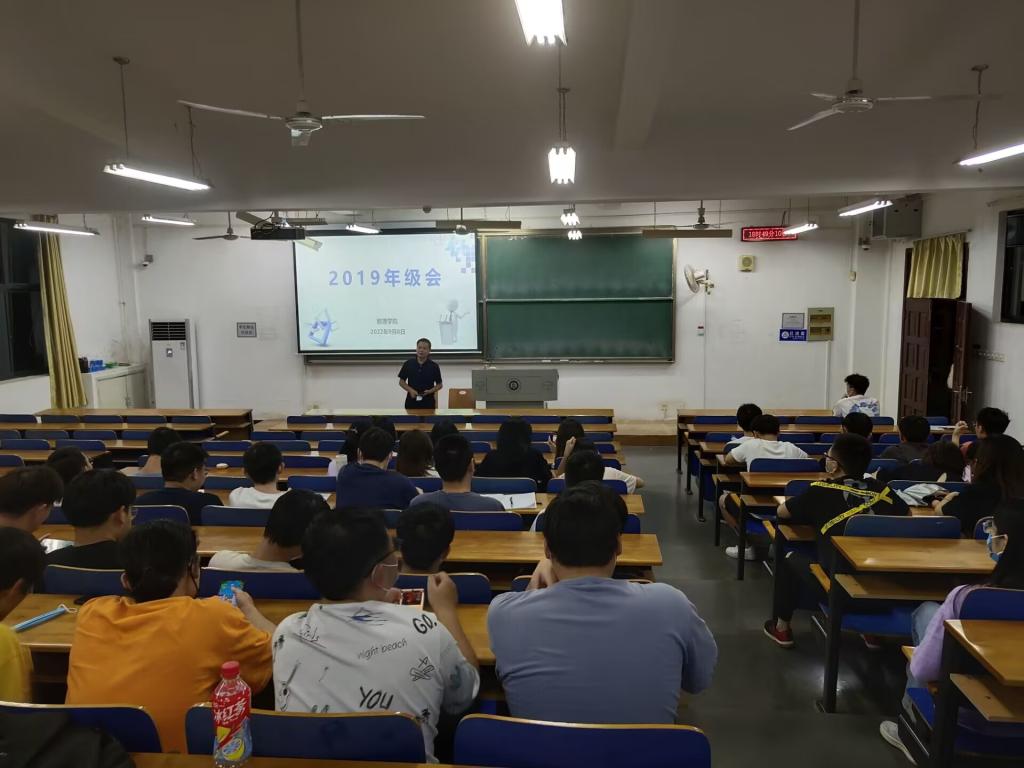 为切实推进毕业年级的各项工作顺利进行,让毕业生们对于毕业去向有更清晰的选择,9月8日晚,数理学院于崇志楼03-115教室组织召开了毕业生年级大会。学院副书记陈国鹏、毕业年级辅导员方媛及2019级全体学生参加会议。