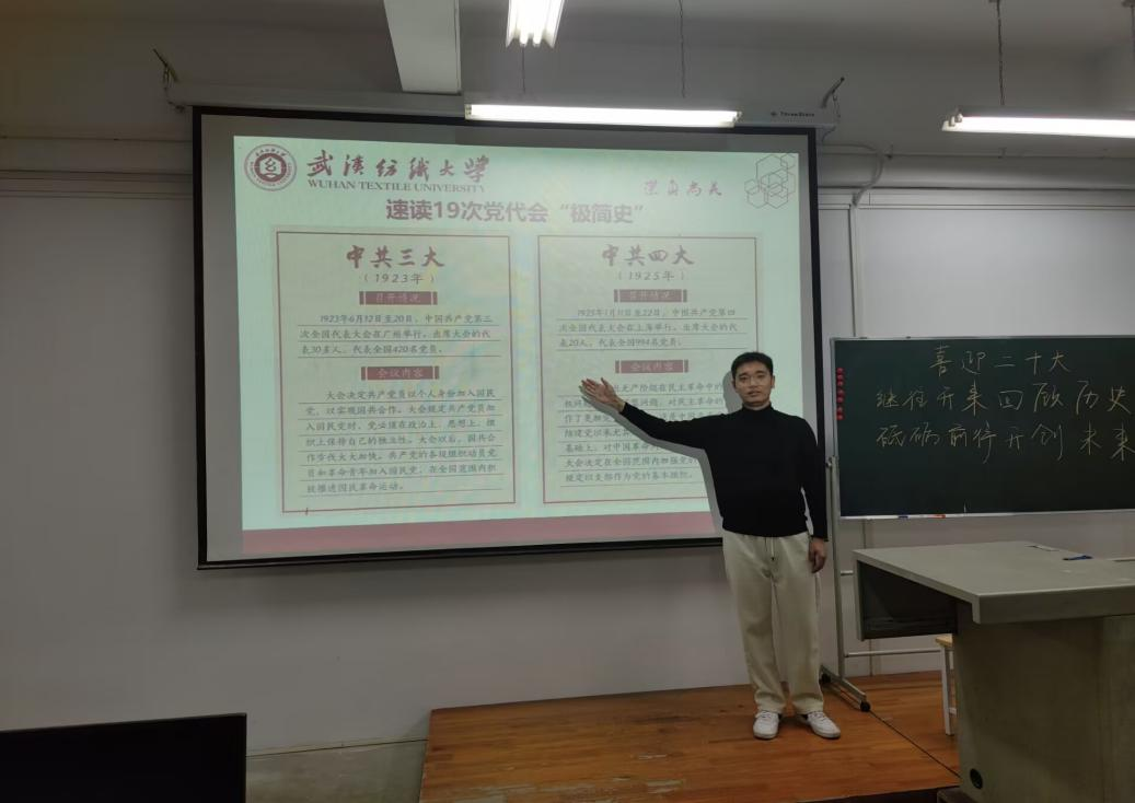 “在本次主题班会上,团支书带领我们回顾了前19次党代会精神及内容,并向大家宣讲了党的二十大召开的重要意义。从中,我深切的感受到在党的领导下新时代中国取得的辉煌成就,深刻体会到青年梦与中国梦的同向同行。中国正在以日益增长的速度不断发展,我辈青年也应当锐意进取、艰苦奋斗,不负党和国家对于新一代青年的期盼。”