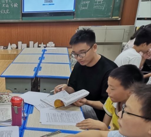 学院在2021年6月开展了一次支教活动,在去鄂州胡林中学支教的最后一天,他给工作汇报中给孩子们写下了这样的寄语——“我希望在他们人生旅行的路途中,当他们遇到迷茫、出现彷徨时,可以变成一盏明灯,为他们指引方向。我期待,待到春暖花开时,候鸟便在不久后会再次回乡反哺。”这应该就是他对于成为一名老师初心的最好诠释。