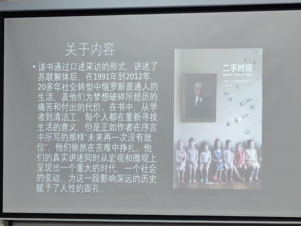 数学类12201班刘卓玥同学,向大家分享了《二手时间》这本书,并讲述了自己的阅读感受。正如书中所说“上帝不是罪恶的始作俑者,他赐给了人类理智及分辨善恶的能力。”她的分享引起了大家的深切共情,很多同学透露出对这本书的浓厚兴趣,在日后也会“忙里偷闲”进行阅读。