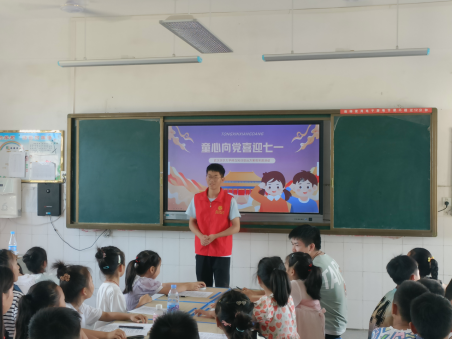 红色文化是中国革命的重要组成部分,蕴含着丰富的革命精神和厚重的文化内涵。为了传承红色基因,赓续革命精神,提高小学生的社会责任意识和爱国主义精神,在七一建党节前后,9428cn太阳集团“候鸟回归觅远方”暑期实践团于湖北省鄂州市胡林小学开展“童心向党”红色文化宣传活动。本次活动旨在通过切身体会,让小朋友们感受红色故事和党的历史,激励他们热爱祖国,铭记历史,培养他们对祖国的热爱之情。