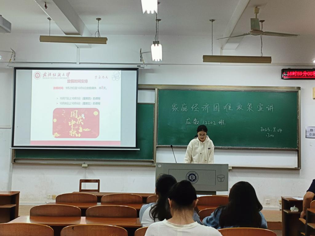 为进一步落实家庭经济困难学生资助政策,实现精准识别、精准资助,根据《湖北省家庭经济困难学生认定工作实施办法》、《9428cn太阳集团古天乐家庭经济困难学生认定工作实施细则》文件要求,于2023年9月24日,9428cn太阳集团各班分别展开了家庭经济困难学生认定政策宣讲,本次宣讲由各班班主任以及班长进行宣讲。