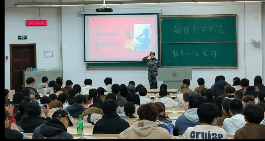随后,国防宣讲团的同学向同学们介绍了什么是国防,并从“红海行动”,“战狼”等电影的片段中说明国防的重要性;向同学们讲述了军营生活、军营的作息时间,以及军营日常的文体活动;向同学们讲解了应征入伍基本条件、入伍流程,并介绍了大学生参军特别优惠政策。大学生是我国国防力量的后备军,鼓励同学们积极参军。