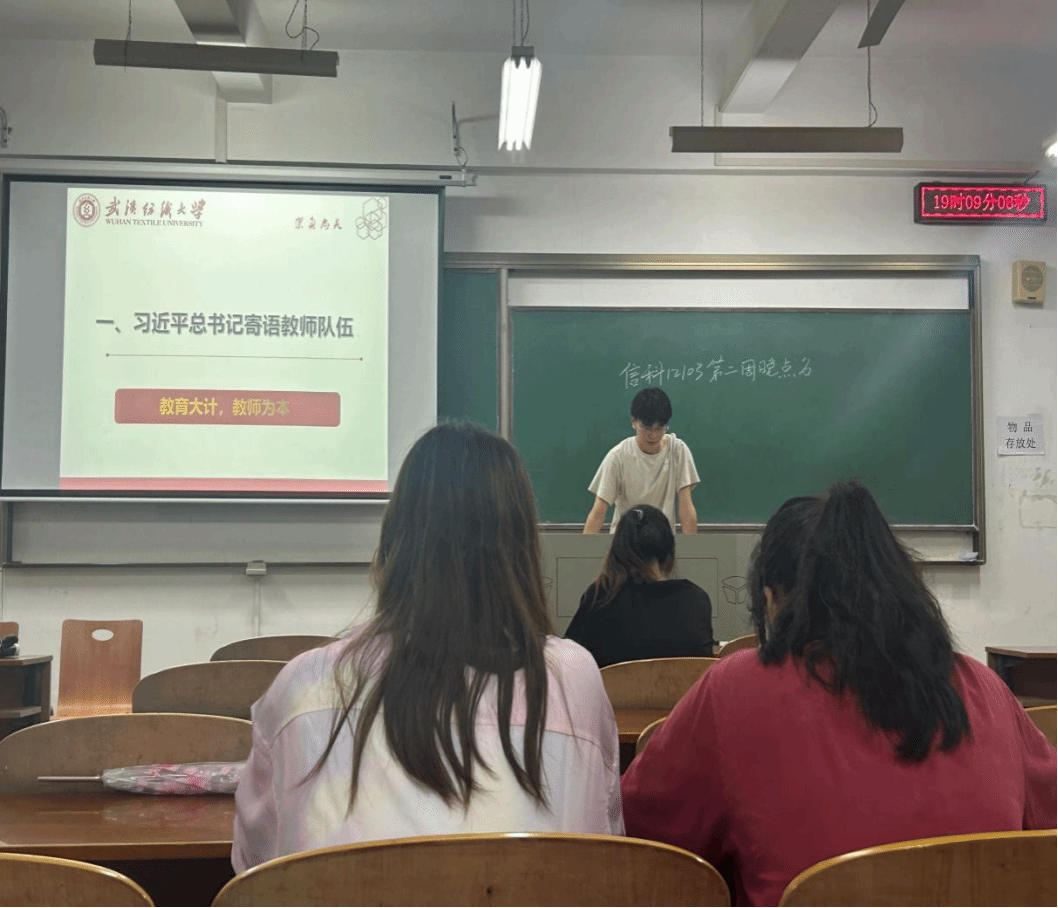 班会伊始,各班级开展感恩教师主题班会,介绍了教师节的由来,观看了我校2023年“最美教师”风采展,引导广大学生弘扬中华民族尊师重教的文化传统,各班级班长带领同学们共同回顾了习近平总书记对教育工作者的慰问“教师承载着传播知识、传播思想、传播真理,塑造生命,塑造新人的时代重任”,习近平总书记的讲话深深回荡在每位同学和老师的心田。不忘初心,需要停下脚步回顾,感念那些为我们付出的优秀教师们;牢记使命,需要每位学子为时代做出贡献,这是对恩师最好的回报。