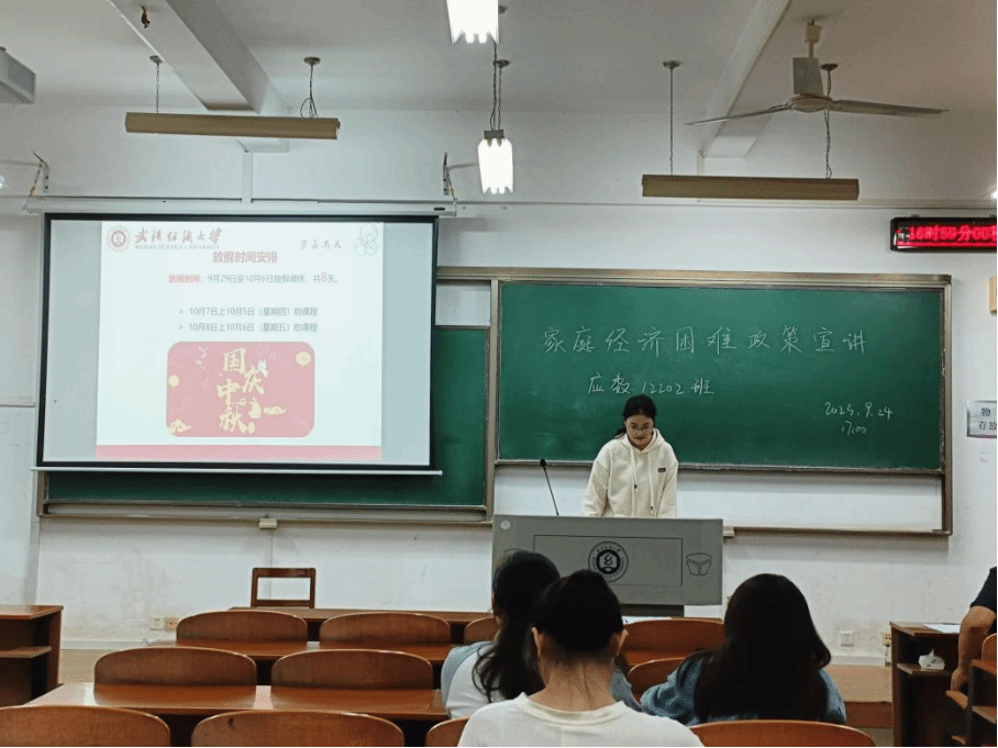 会议伊始,各班班长传达了“双节同庆,安全牢记”主题班会内容,告知同学们放假时间安排和调休通知,从交通安全、防溺水、消防安全、饮食、反诈骗等多方面介绍了安全注意事项,引导同学们关注自身的人身和财产安全,预防交通事故的发生,确保假期的安全稳定,度过一个愉快的假期。接着,各班班长向班级同学宣讲了家庭经济困难学生认定政策,集中学习了《9428cn太阳集团古天乐家庭经济困难学生认定工作实施细则》。