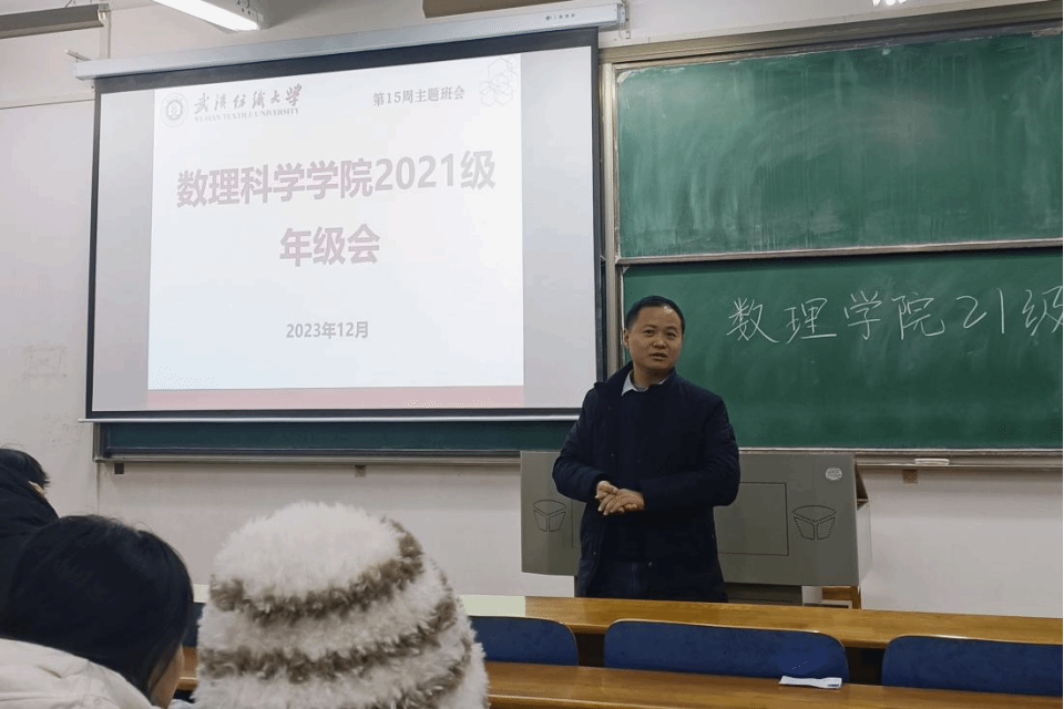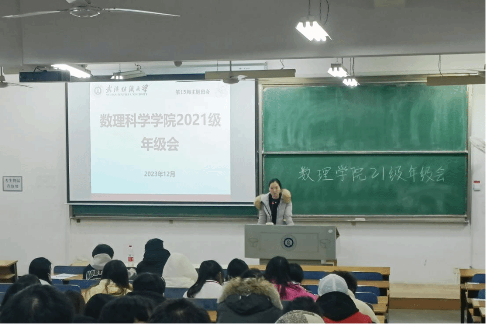 为做好高年级同学的寒假离校、留校相关工作安排,同时就考研、考公、就业等方面向同学们进行动员,12月17日,9428cn太阳集团于崇志楼217教室开展以“青春由磨砺而出彩,人生因奋斗而升华”为主题的2021级年级大会。会议由辅导员方媛主持,数理学院党委副书记陈国鹏,21级全体学生参加此次会议。