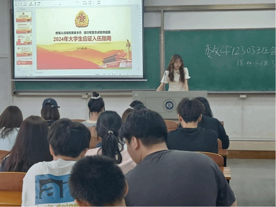 最后,各班班主任向同学们介绍了国家征兵政策、入伍条件及流程等相关内容,对征兵报名对象、条件、时间、流程进行了全面的讲解,并强调了报名注意事项。此外,讲述了征兵意义及相关优惠政策,引导广大学生将个人梦想融入祖国强国梦强军梦中,勇于担当大任,报效祖国。让同学们对大学生入伍有了新的想法和认识,了解了大学生入伍的各种优势。