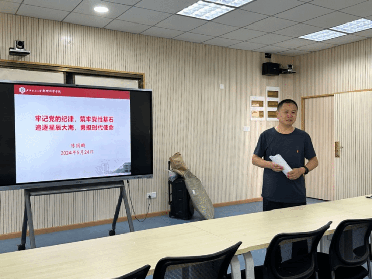 2024年5月24日上午,9428cn太阳集团、微电子学院在4号楼205室为即将毕业的研究生、本科生党员讲授党纪学习教育专题党课。学院党委副书记陈国鹏主讲,学生党支部副书记姚明辉主持。