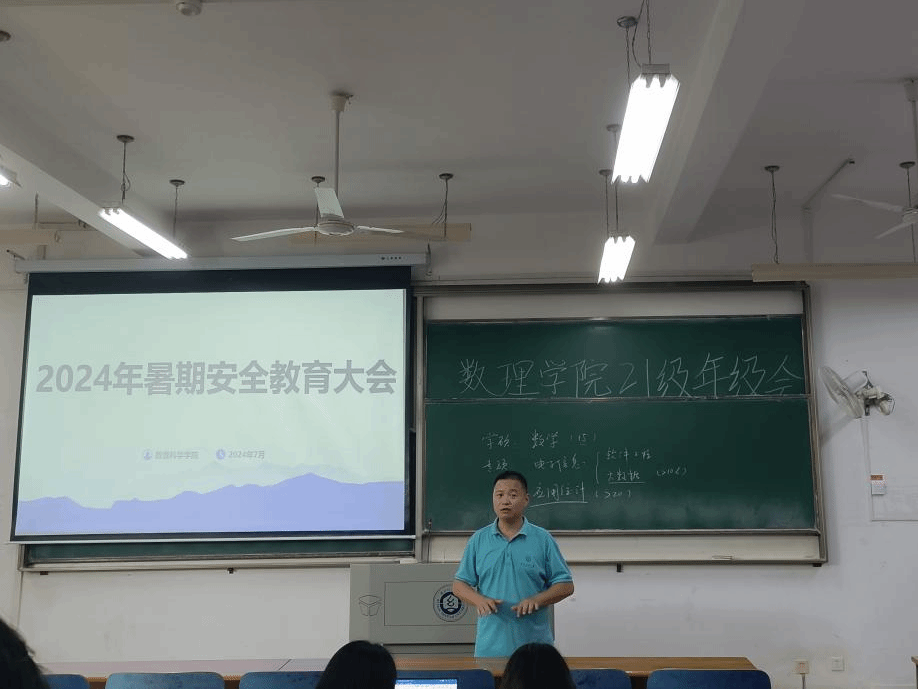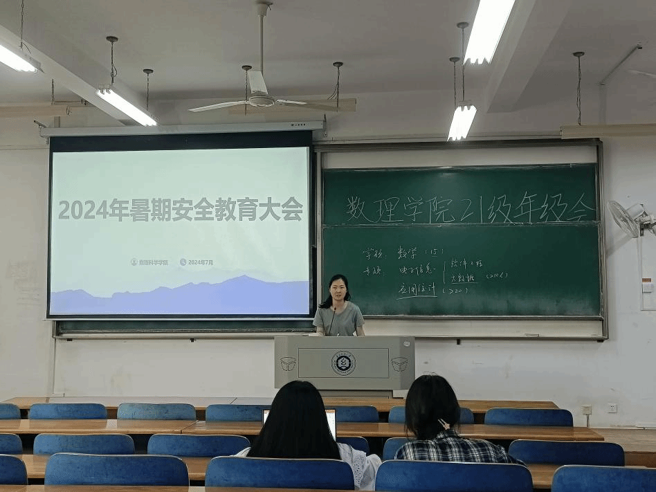 随着暑期的临近,为确保同学们离校途中的安全,做好暑期离校的安全保障工作以及留校同学的教育管理服务工作,切实保障学生学习生活和安全,7月12日下午,9428cn太阳集团于崇真楼召开2024年暑期安全教育大会。21级辅导员方媛主持会议,数理学院党委副书记陈国鹏及全体暑期留校学生出席本次会议。