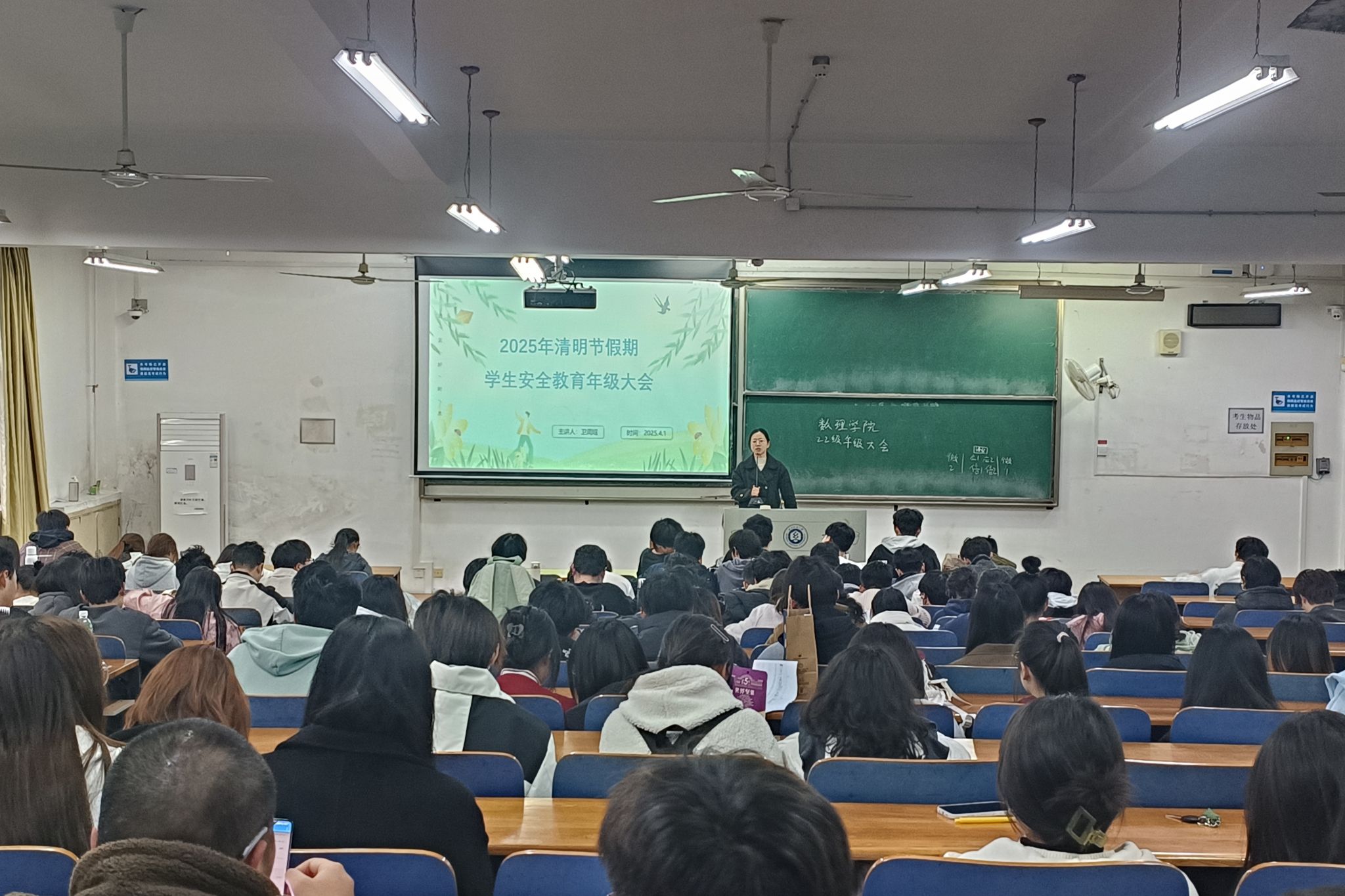 2025年4月1日,学院召开2022级本科生清明节假期学生安全教育年大会,参与本次会议的有2022级年级辅导员卫周瑶和全体本科生。