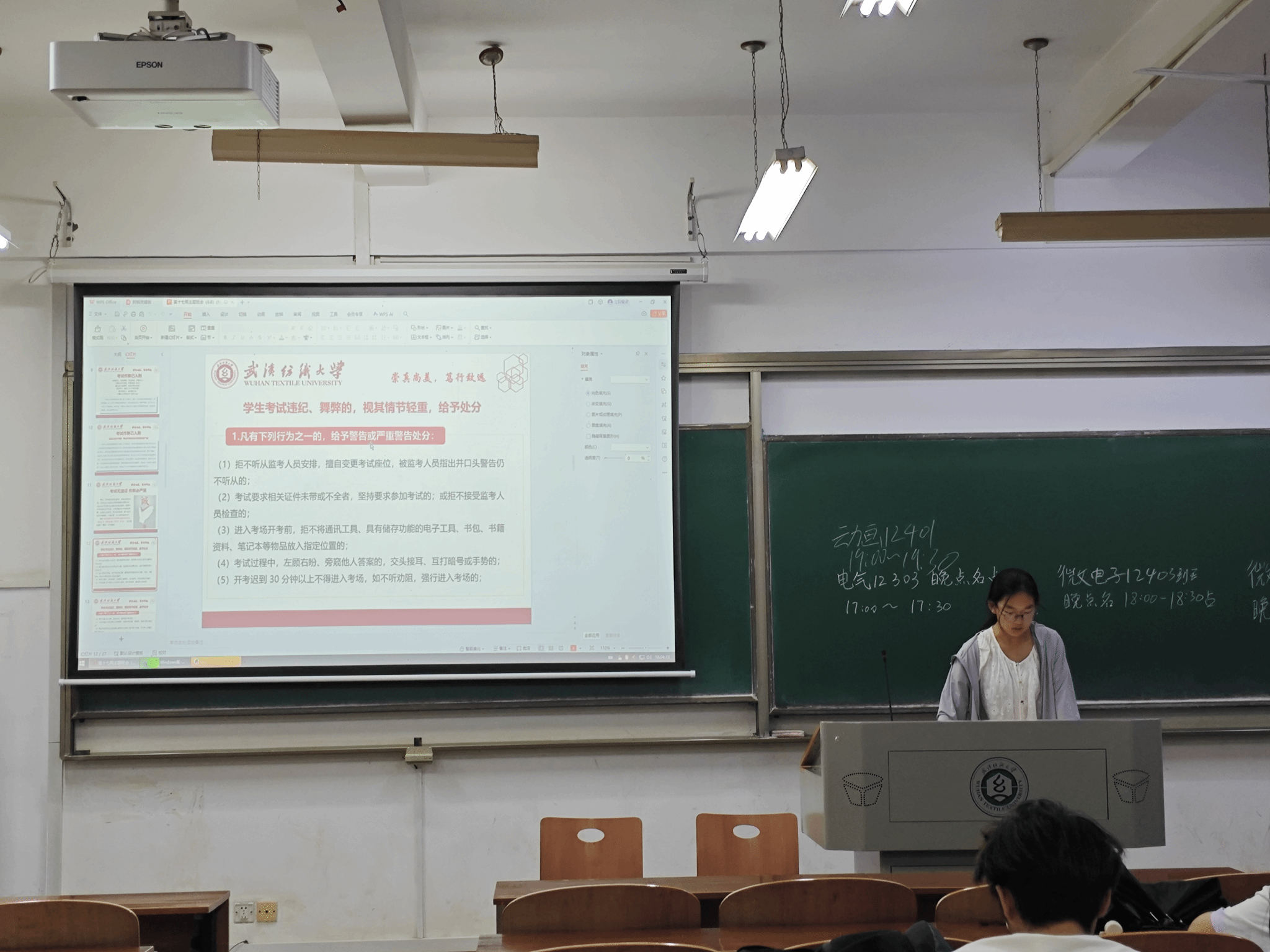 班会伊始,各班班长首先围绕学校考试纪律规定展开讲解。通过梳理《学生考试违规处理办法》要点,结合历年典型案例,从考试作弊的认定情形、处理流程,到对学业、个人发展的长远影响,进行全方位剖析。“携带违规资料进入考场、考试中传递答案、协同作弊…… 这些行为不仅会取消成绩,还将记入个人档案,影响评奖评优、保研就业,是触碰不得的 ‘高压线’。”通过严肃强调,让同学们对考试纪律有了更清晰、深刻的认知。