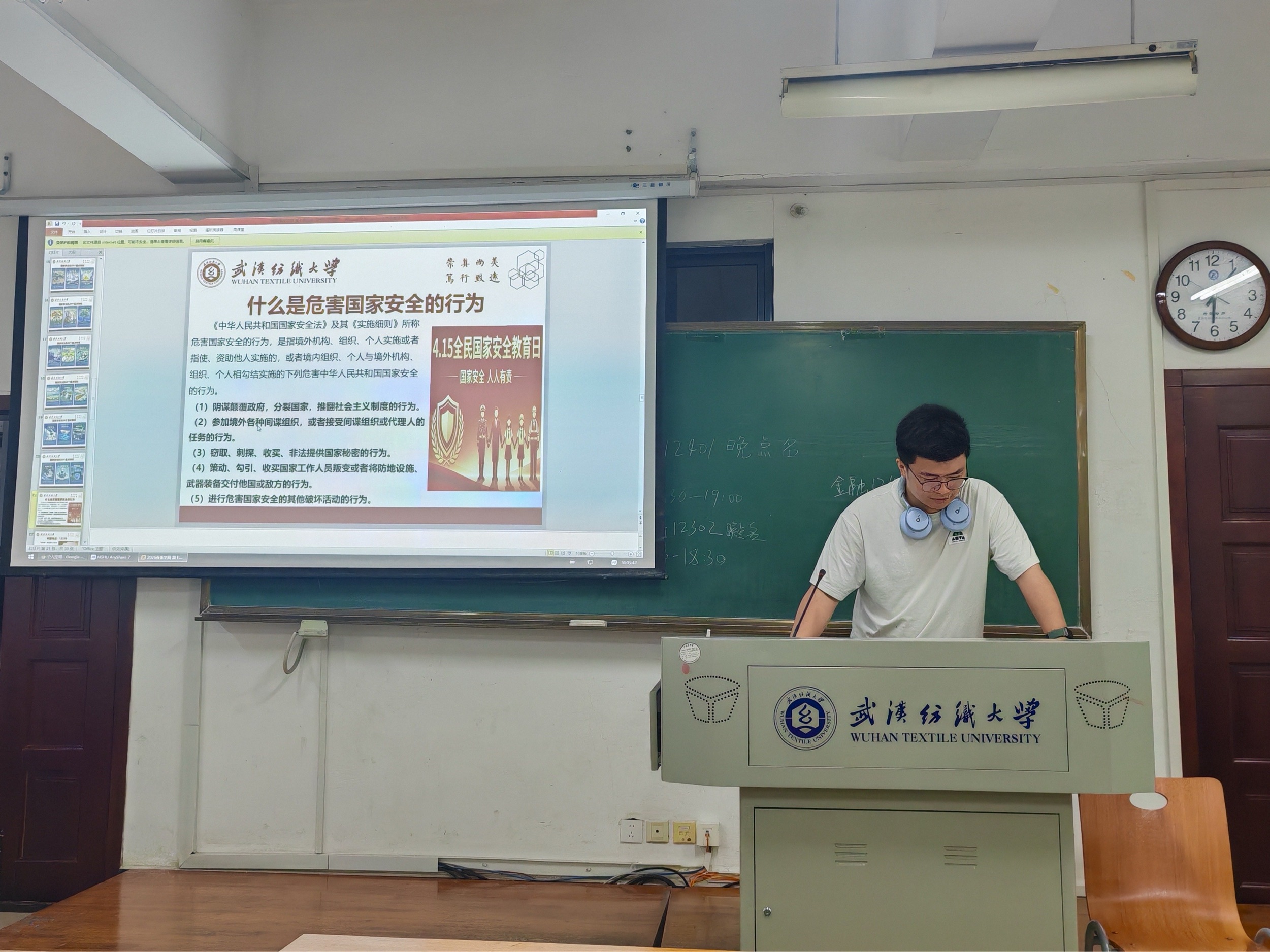 班会详细讲解了公民维护国家安全的法定义务,介绍危害国家安全的各类行为,并公布12339举报电话与网络举报平台,引导同学们知法守法、提高警惕。同时,结合大学生学习生活实际,从筑牢思想防线、规范网络言行、谨慎甄别兼职、强化生物安全、守护文化安全、主动举报线索六个方面,明确青年学子的安全责任与行动方向。