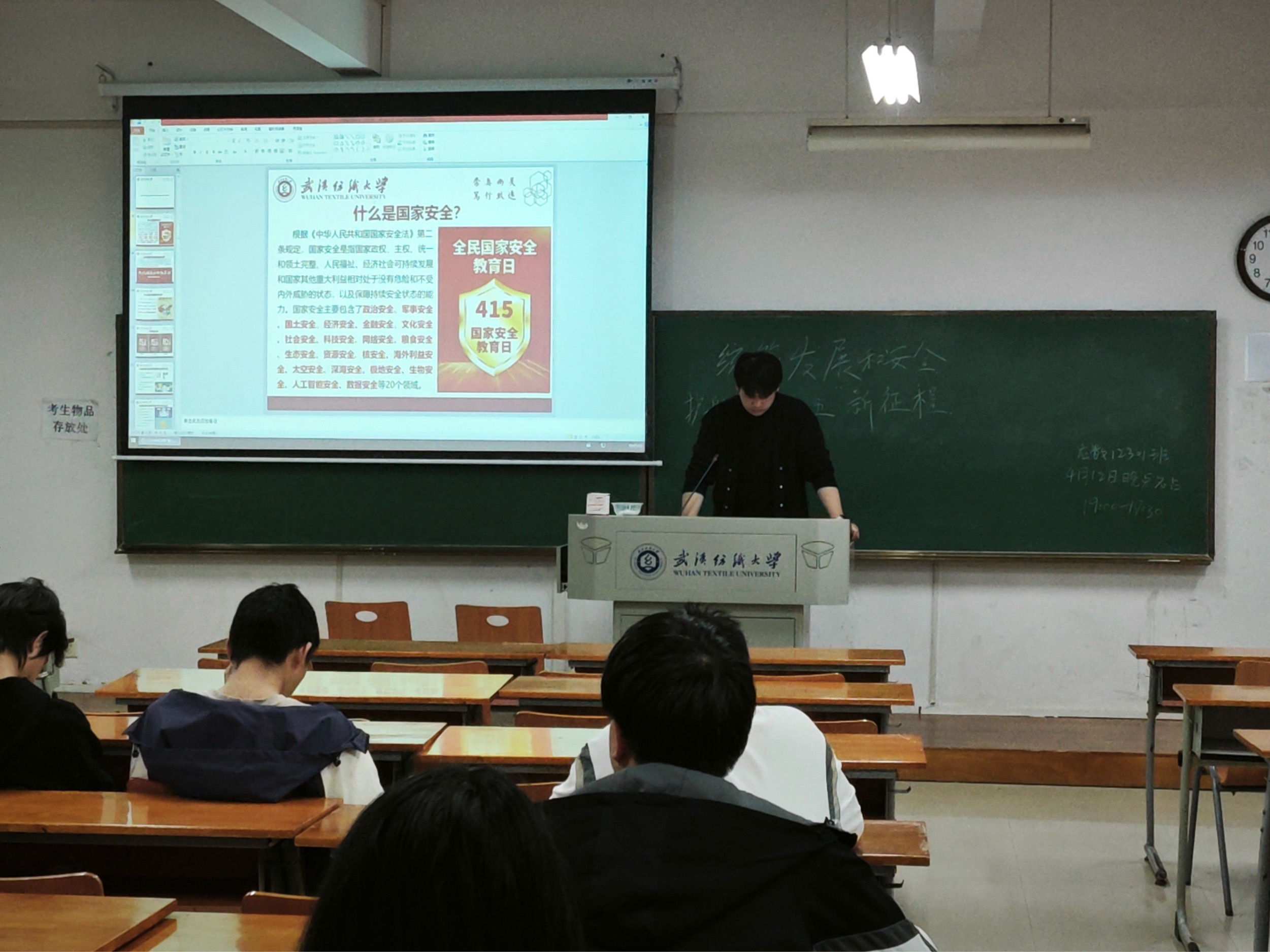 为迎接4月15日全民国家安全教育日,强化青年学生国家安全意识,数学与统计学院于2026年4月12日在崇志楼召开第七周主题班会。本次班会以“统筹发展和安全,护航‘十五五’新征程”为主题,各班级有序开展学习教育活动,全体同学参与其中,班会由各班班长主持,全体同学参加。