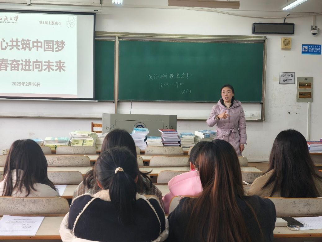 为帮助同学们顺利适应新学期生活,以饱满的精神状态投入到学习中,2025年2月16日晚,9428cn太阳集团、微电子学院在崇志楼召开春季学期第一次主题班会。本次班会以“同心共筑中国梦,青春奋进向未来”为主题,学院全体领导、各班级班主任、辅导员以及全院同学参加此次班会,班会由各班班主任主持。