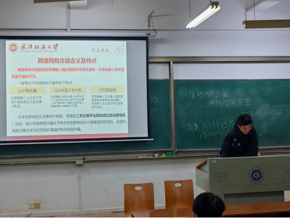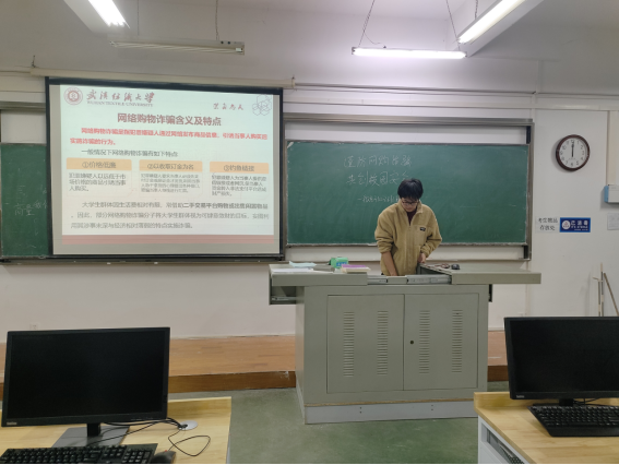 会议伊始,各班班长带领同学们学习网购诈骗的含义及特点,宣传网购的风险以及网购诈骗的危害,提醒同学们在网络上小心谨慎,防患于未然。