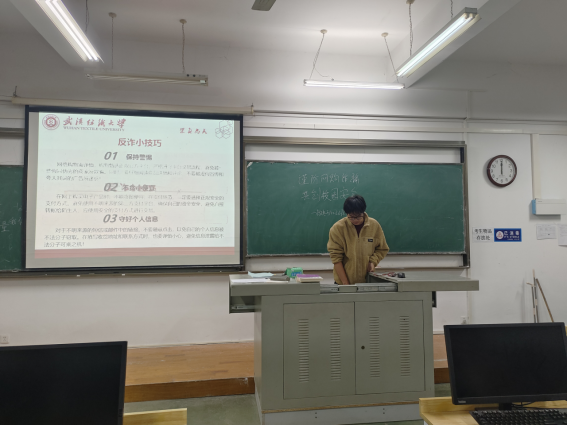 随后,各班班长带领同学们了解反诈小技巧,第一点是保持警惕,告诫同学们不要被虚假宣传和夸大其词的商品所迷惑;其次是不贪小便宜,指出同学们一定要确保自己的资金安全,应使用安全的支付方式进行支付;最后指出同学们要保护好个人信息,避免个人信息泄露让不法分子有可乘之机。