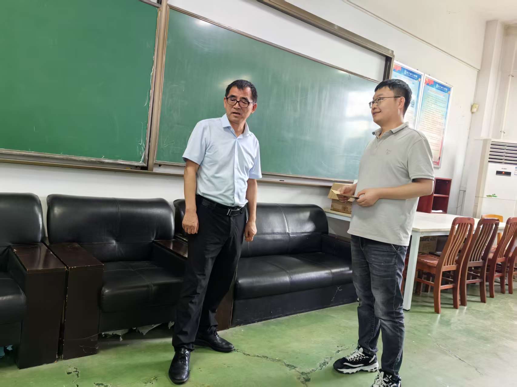 姜明华在学院非线性科学研究中心工作室与佘智磊亲切交谈,详细询问他和家人的身体、生活、工作情况。姜明华叮嘱他保重身体,有困难向党组织反映,并要求学院党委关心关注困难党员工作、生活情况,及时帮助困难党员解决实际问题。
