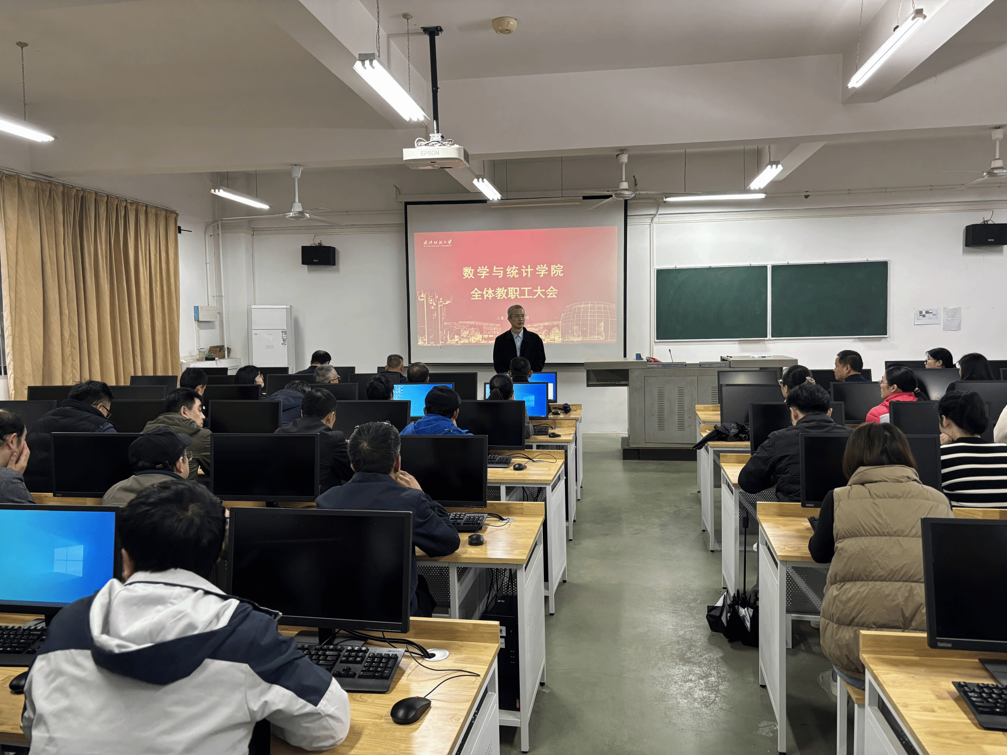 罗锦银对学院建设与发展做了重要指示。他回顾了学院建设发展历程,对学院师资队伍、学院发展给予充分肯定。他强调,数学与统计学院单独设立,以及学院主要负责人调整是学校党委经过充分考虑后做出的重要战略部署,是学校抢抓机遇、完善学科布局的重要举措。他对学院班子建设、学院发展提出了具体要求。一是要讲政治、树牢大局意识,要深刻领会学校的改革部署,勇担教育教学改革的先锋,主动作为、积极作为,为纺大创新型人才培养做出更大的贡献。二是要讲团结、营造风清气正的良好氛围,要发挥班子凝心聚力作用,要锚定学院发展目标,心往一处想、劲往一处使,在建设美好纺大、美好数统学院的征程中,收获自身的发展与幸福。三是要讲稳定、夯实学院发展的基础,要统筹好发展与安全稳定的关系,深化党建引领基层治理,牢牢守住安全稳定底线,树牢安全责任意识,强化安全责任落实,防范化解各类风险矛盾,保障学院各项工作稳定有序。罗书记对学院主要领导调整后的发展给予厚望、充满信心,希望学院在学校“双一流”建设征程中有新的更大的作为。
