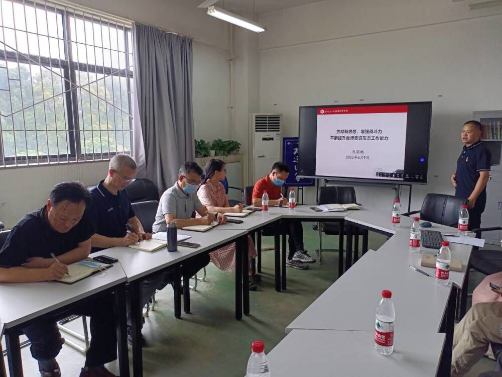 陈国鹏以《贯彻新思想,增强战斗力,不断提升教师意识形态工作能力》为题做了学习报告。他围绕意识形态的内涵、特点及重要性,高校意识形态工作面临的挑战,高校教师意识形态工作能力提升等三个方面汇报了自己的体会。并提出高校主流意识形态话语责任主体是广大教师,牢牢掌握高校意识形态话语权需要依赖广大教师亲自实践和榜样示范,只有广大教师真信、真学、真用,才能增强广大学生对主流意识形态的接受度。