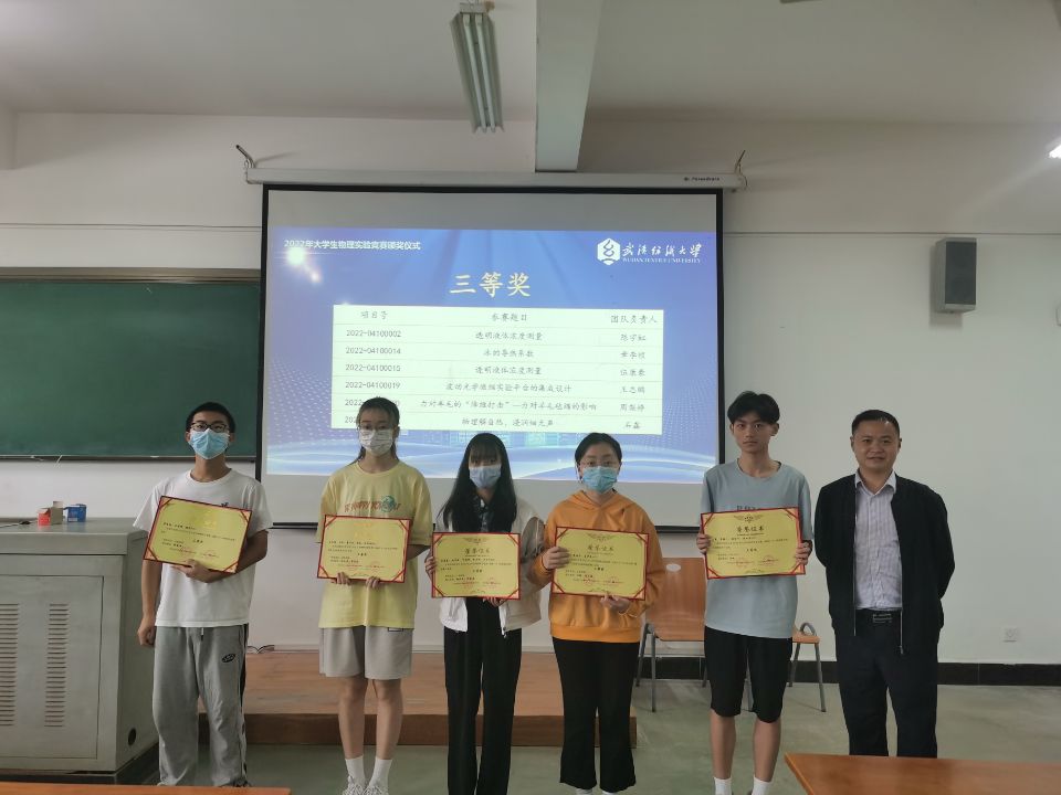 2022年5月12日,我校2022年大学生物理实验竞赛颁奖仪式在4号楼举行。创新创业学院副院长凡蓉蓉,9428cn太阳集团党委书记段溢波、院长汪胜祥、副院长许明耀、副书记陈国鹏出席。参赛队伍师生代表100余人参加。