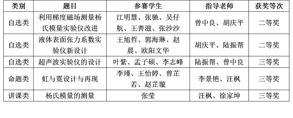 全国大学生物理实验竞赛(创新)激发了学生对大学物理和物理实验课程的学习兴趣和学习潜能,在实践中培养了学生的创新精神和实践能力,在竞赛中提升了学生的团队协作意识和综合素质,为不断深化我校物理实验教学改革,着力提高物理实验教学质量和创新型人才培养质量提供了新途径。