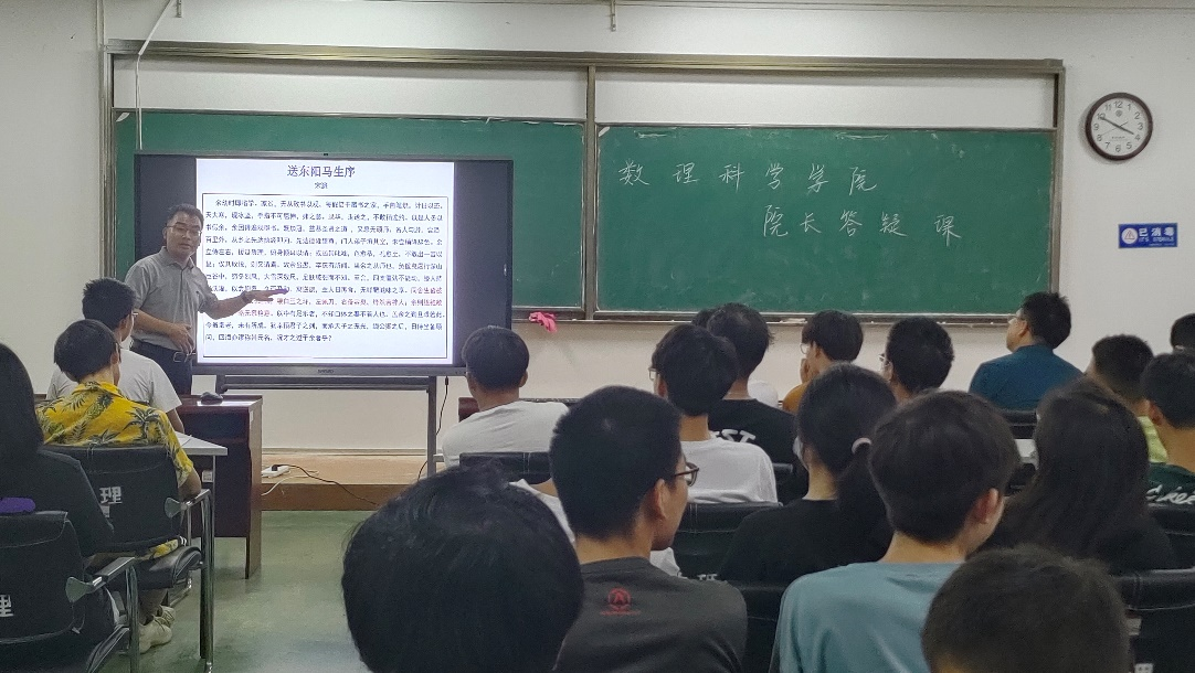 2022年6月12日下午,9428cn太阳集团于崇文楼204室召开2019级院长答疑课。9428cn太阳集团党委副书记陈国鹏,班主任王洪山、仇华海、李会珍,辅导员方媛及全体2019级学生参加本次活动。