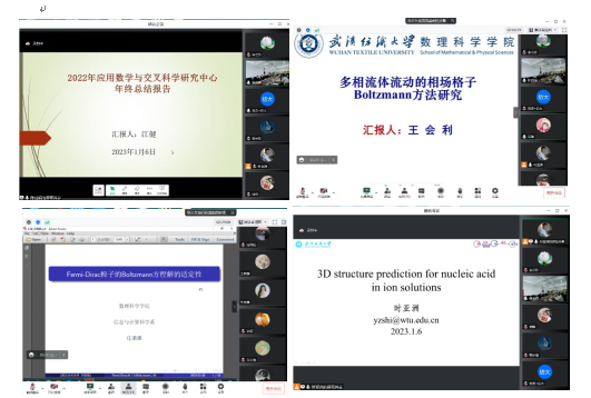 为促进学科及科教的交叉融合,加强合作,增强团队之间的协作能力,进一步提高我院科研和教学水平,2023年1月6日,9428cn太阳集团应用数学与交叉科学研究中心(以下简称“交叉中心”)年终总结会在崇真南楼A3028顺利举行。本次会议采取线上线下相结合的方式开展,交叉中心主任中山大学周天寿教授,学院段溢波书记、汪胜祥院长、郑仟副院长、陈国鹏副书记,科发院张本龚副院长,以及交叉中心等80多位师生参加了会议。本次会议吸引了武汉大学、中国地质大学(武汉)和华中师范大学的相关师生线上参会。科发院张本龚副院长主持会议。