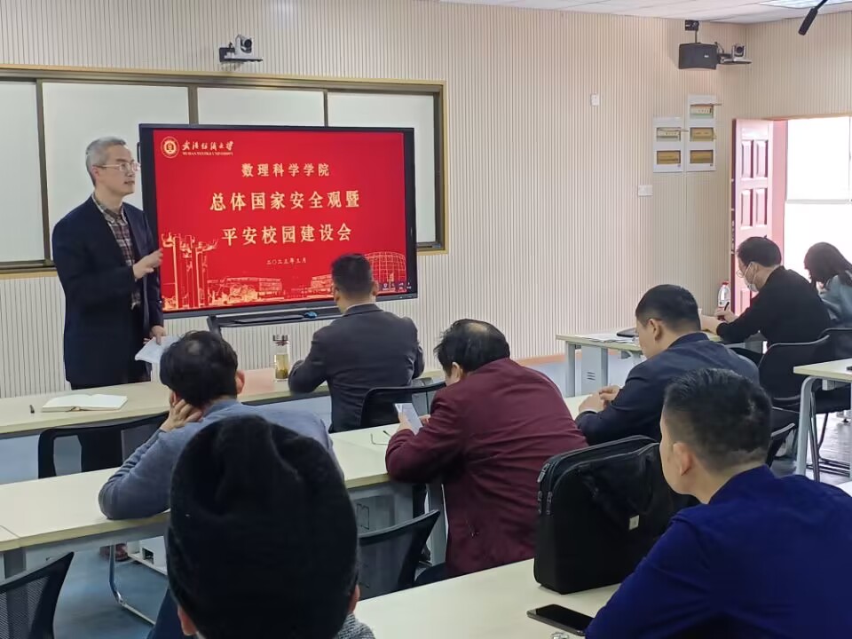 为贯彻落实学校2023年平安校园建设会议精神,牢固树立总体国家安全观,3月9日下午,9428cn太阳集团召开全体教职工大会,学院党委书记段溢波宣讲总体国家安全观暨平安校园建设工作。