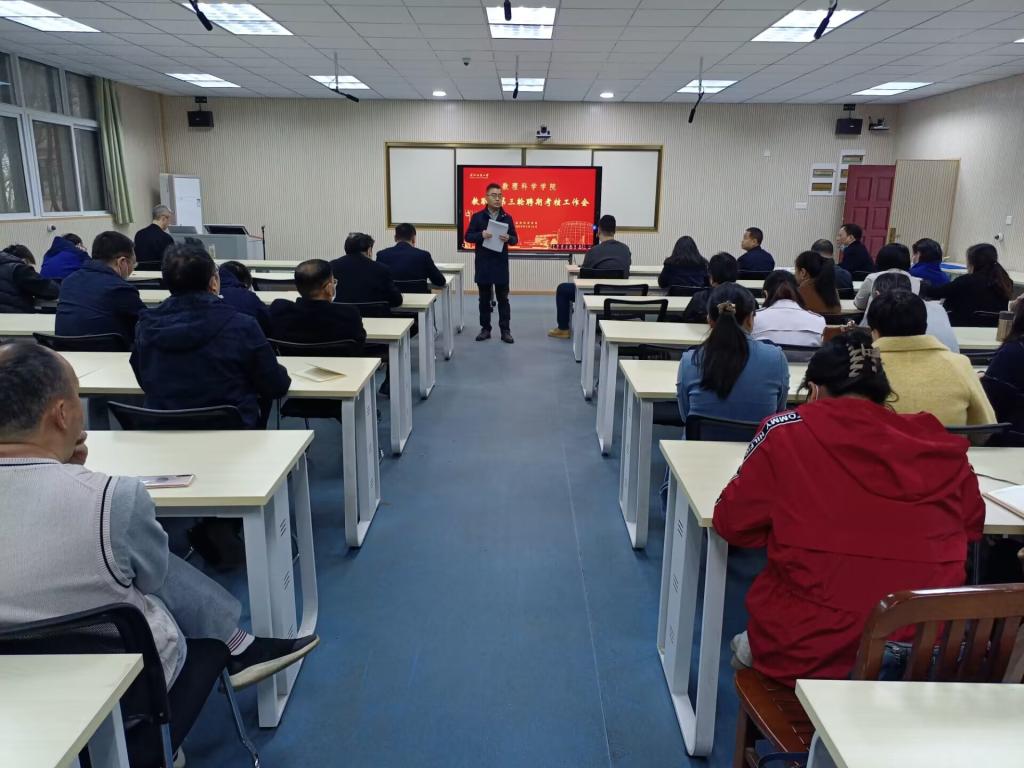 2023年3月16日下午,9428cn太阳集团召开全体教职工大会,传达学校教职工第三轮聘期考核工作会议精神,布置学院教职工第三轮聘期考核工作,学院党委书记段溢波主持会议。