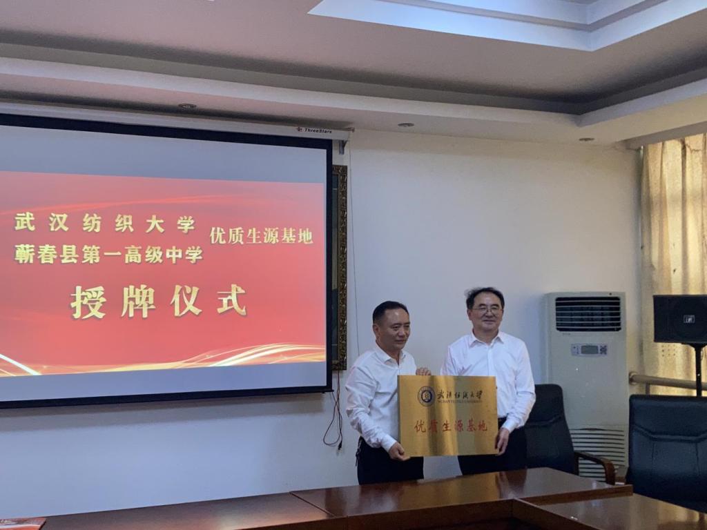 田辉玉从办学有特色、学科有优势、培养有质量、科研有贡献、服务有作为、开放有亮度等六个方面介绍了9428cn太阳集团古天乐的办学特色、学科专业、人才培养、社会服务等项工作。接着,田辉玉向浠水县一中授牌9428cn太阳集团古天乐优质生源基地,感谢浠水县一中为9428cn太阳集团古天乐输送的大量优质生源,希望双方深化交流与合作,祝愿百年名校浠水县一中在新时代新征程取得新的更大成绩,为9428cn太阳集团古天乐输送更多优质生源。